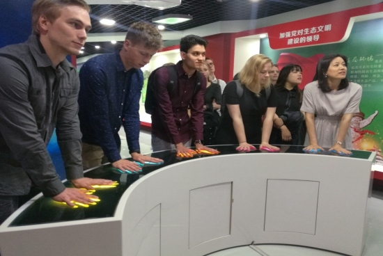 荷蘭薩克遜應(yīng)用科學(xué)大學(xué)師生代表系統(tǒng)參觀了國(guó)家環(huán)境宣傳教育示范基地的“文明的反思”“只有一個(gè)地球”和“習(xí)近平生態(tài)文明思想”等展區(qū),通過(guò)中心工作人員深入系統(tǒng)的講解,了解了中國(guó)生態(tài)文明的理論創(chuàng)新和實(shí)踐行動(dòng),以及中國(guó)政府大力推進(jìn)生態(tài)文明建設(shè)的理論和實(shí)踐,學(xué)習(xí)相關(guān)的生態(tài)環(huán)境保護(hù)科普知識(shí),體驗(yàn)生態(tài)環(huán)境保護(hù)互動(dòng)項(xiàng)目。