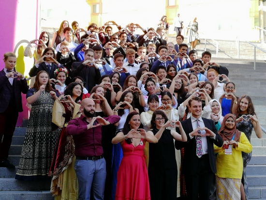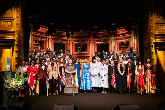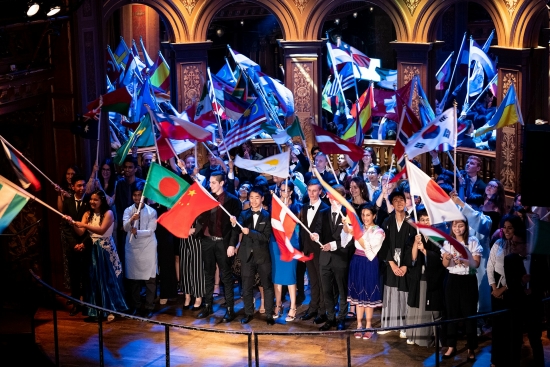 瑞典王儲維多利亞公主(中)接見各國參賽選手