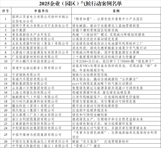 關于2025企業(yè)(園區(qū))氣候行動案例名單的公示